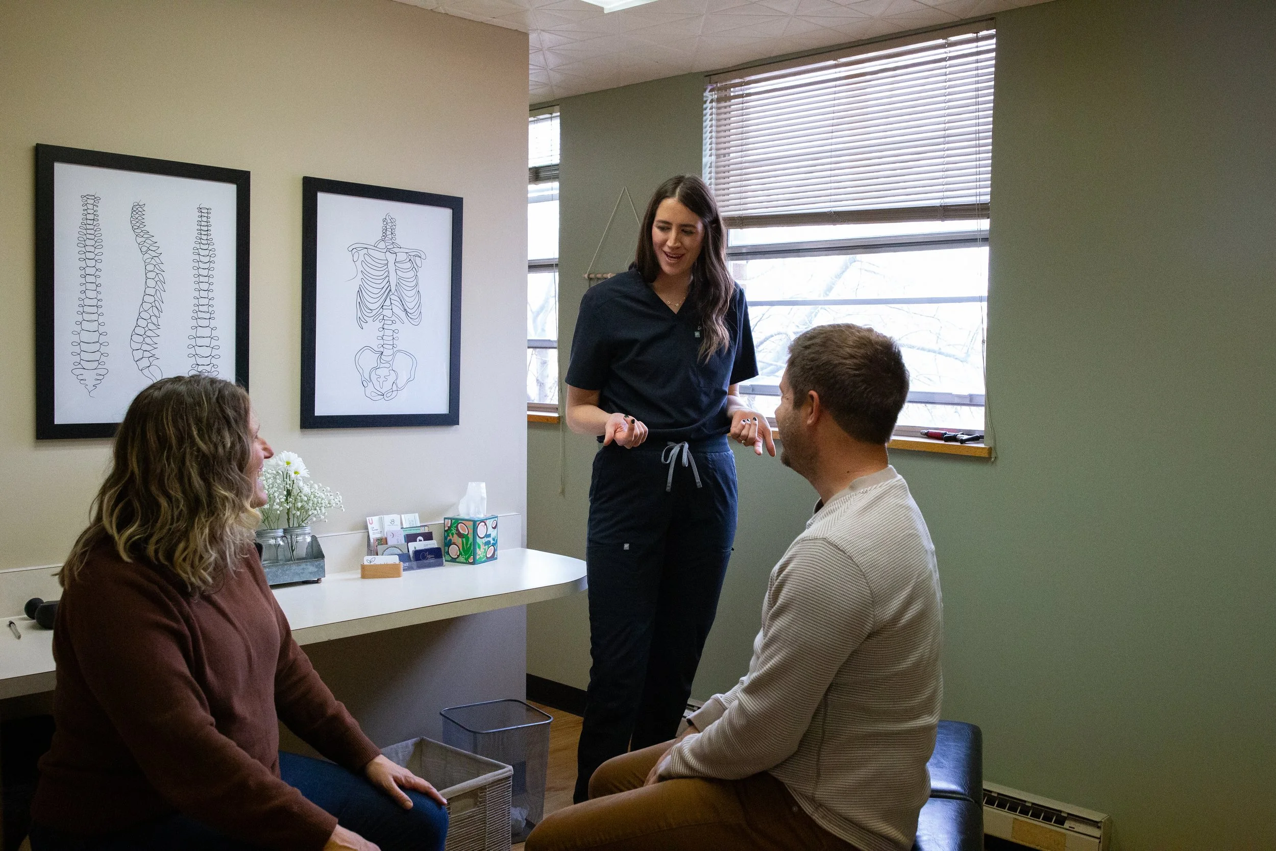 After your first appointment your care moving forward is efficient with consecutive visits lasting around 15 minutes. The first visit we address what health goals you want to obtain as well as the frequency that is recommended in order to hit those goals.